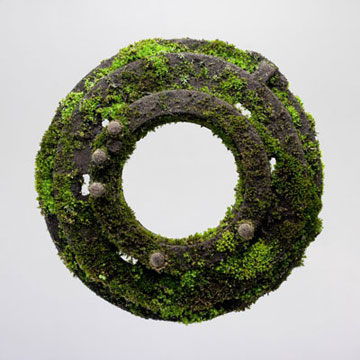 Regard plastique et contemplatif bien que documentaire dans un premier temps, à cette observation succède le prélèvement puis l’intervention, dans une tentative de création à la lisière de la photographie, passant de la culture de mousse à la fabrication d’objets végétaux, empreintes de l’objet manufacturé impuissant à résister aux bouleversements économiques.